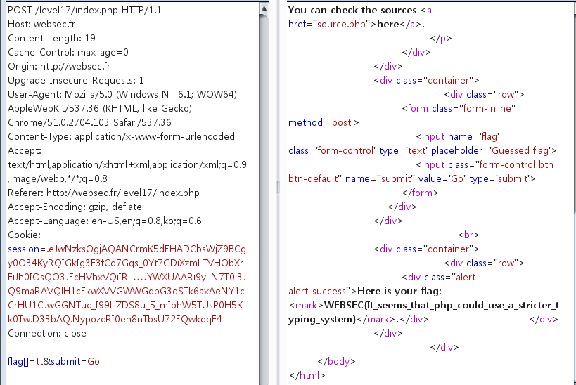 POST 방식으로 넘겨준 flag 파라미터값과 $flag 변수의 값이 일치할 경우 $flag를 출력해준다고 한다.