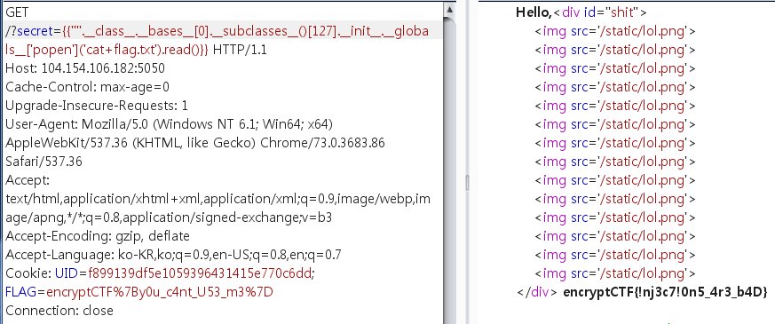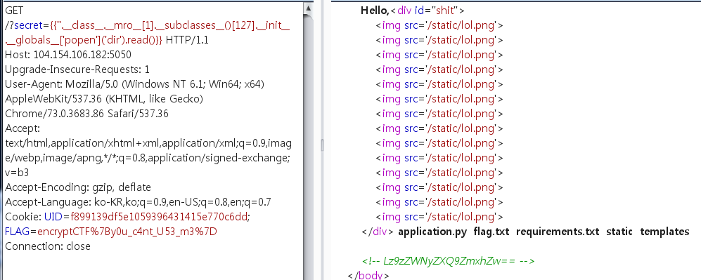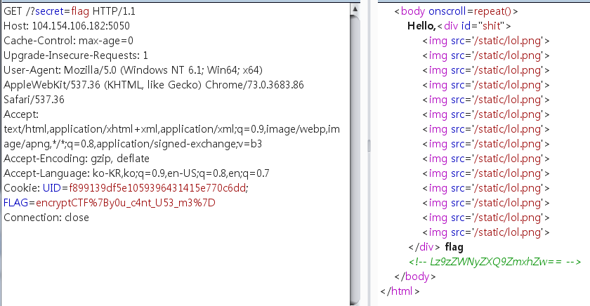해당 값으로 접근해보면 응답에 내가 입력한 flag가 출력된 것을 볼 수 있다.