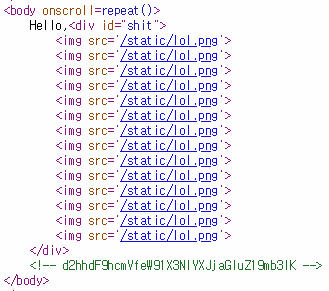문제에 접근하면 아래와 같이 소스 내 주석으로 base64 된 문자열을 볼 수 있다.