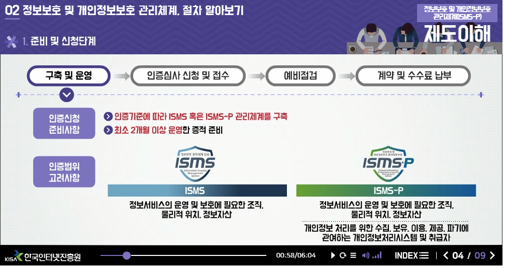 - 인증신청 준비 시 최소 2개월 이상 운영한 증적 준비가 필요