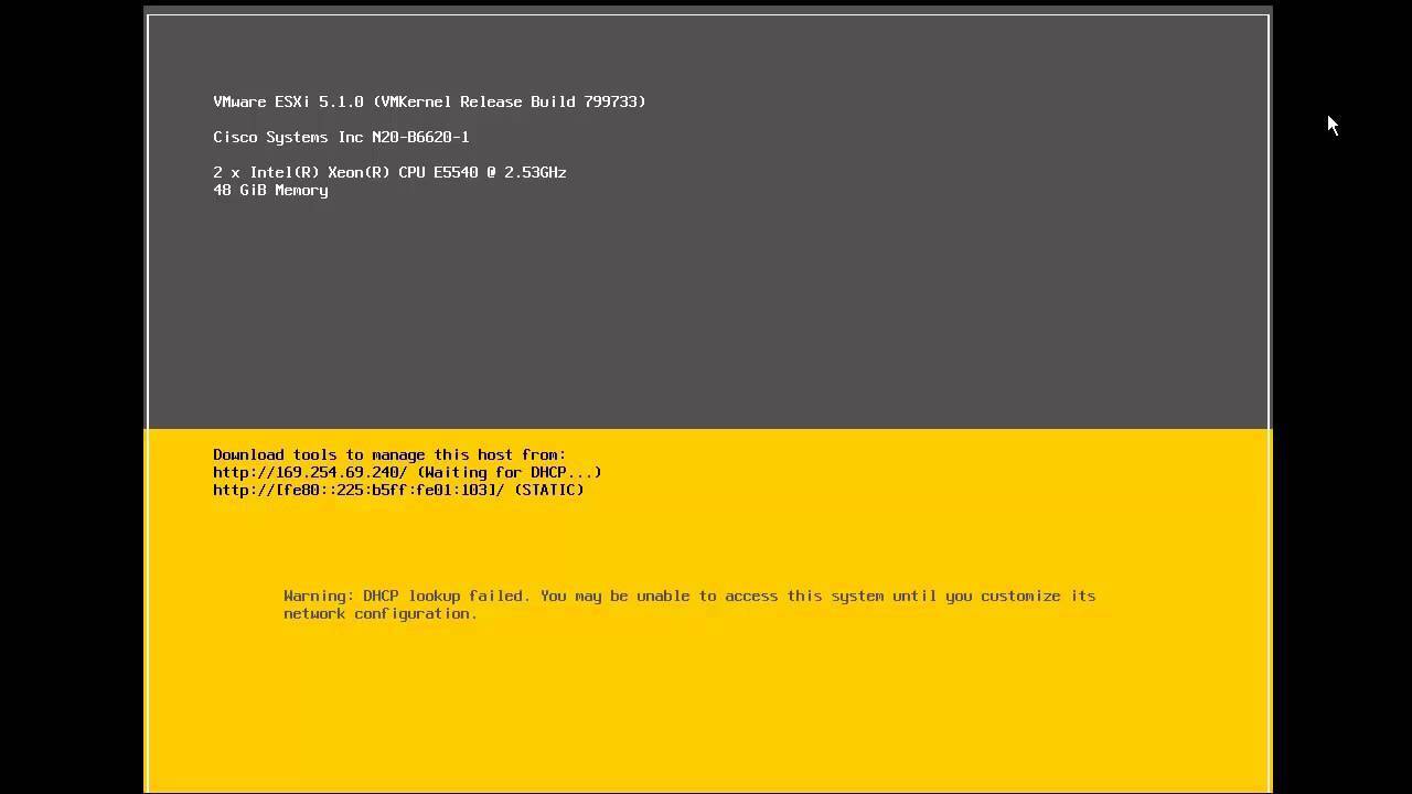 Warning : DHCP lookup failed. You may be unable to access this system until you customize its network configuration.