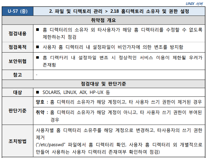 주요정보통신기반시설 기술적 취약점 분석 평가 방법 상세 가이드 중 [홈디렉토리 소유자 및 권한 설정] 항목을 한줄 커멘드로 확인하고 싶었다.
