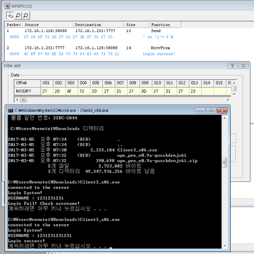 - burp suite의 경우 TCP 패킷을 잡지 못하기 때문에 WPE를 사용한다.