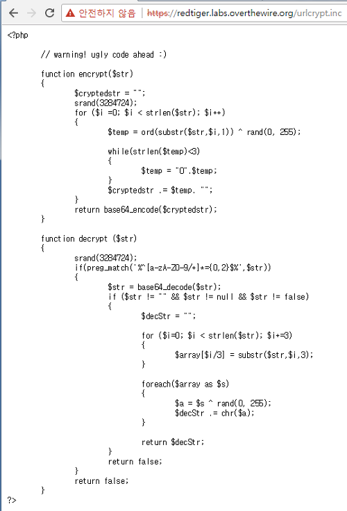 접근한 결과 php코드가 나타나고 이를 통해 usr 파라미터값은 이 php의 encrypt 함수를 통해 나타난 것이란 것을 알 수 있다.