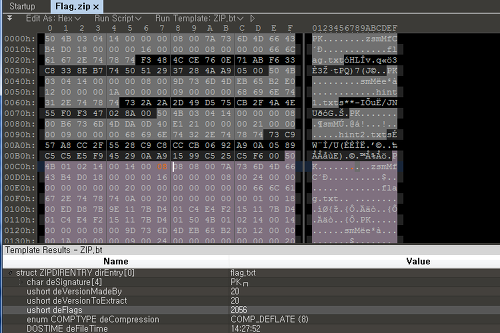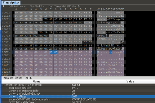 그렇다면 문제에서 제공한 zip 파일에서 flag.txt는 어떤 형식으로 되어있는지 보자.