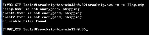 그래서 fcrackzip을 이용하여 해당 zip 파일의 암호를 해독해보려 했는데 flag.txt가 암호화가 되어있지 않다고 뜬다.